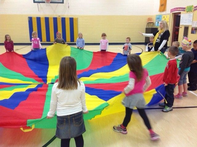 This isn’t my actual class, but I figured I would let you reminisce your own childhood memories of playing with the parachute.